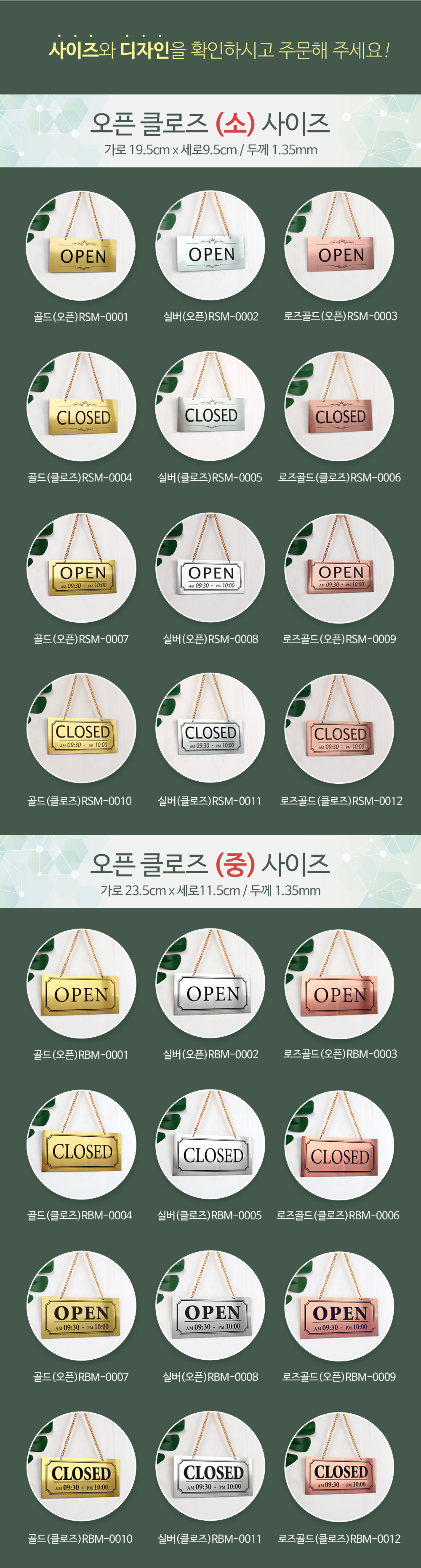 오픈클로즈 단면걸이 매장 영업 안내판 도어사인 24종 이미지 확대 보기