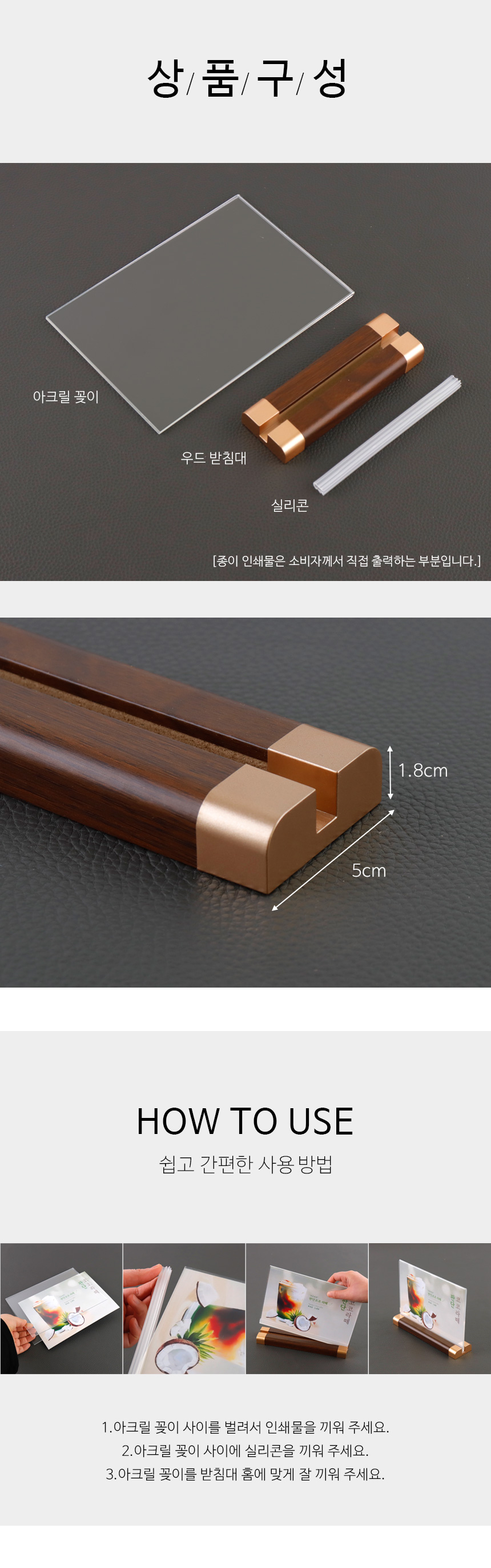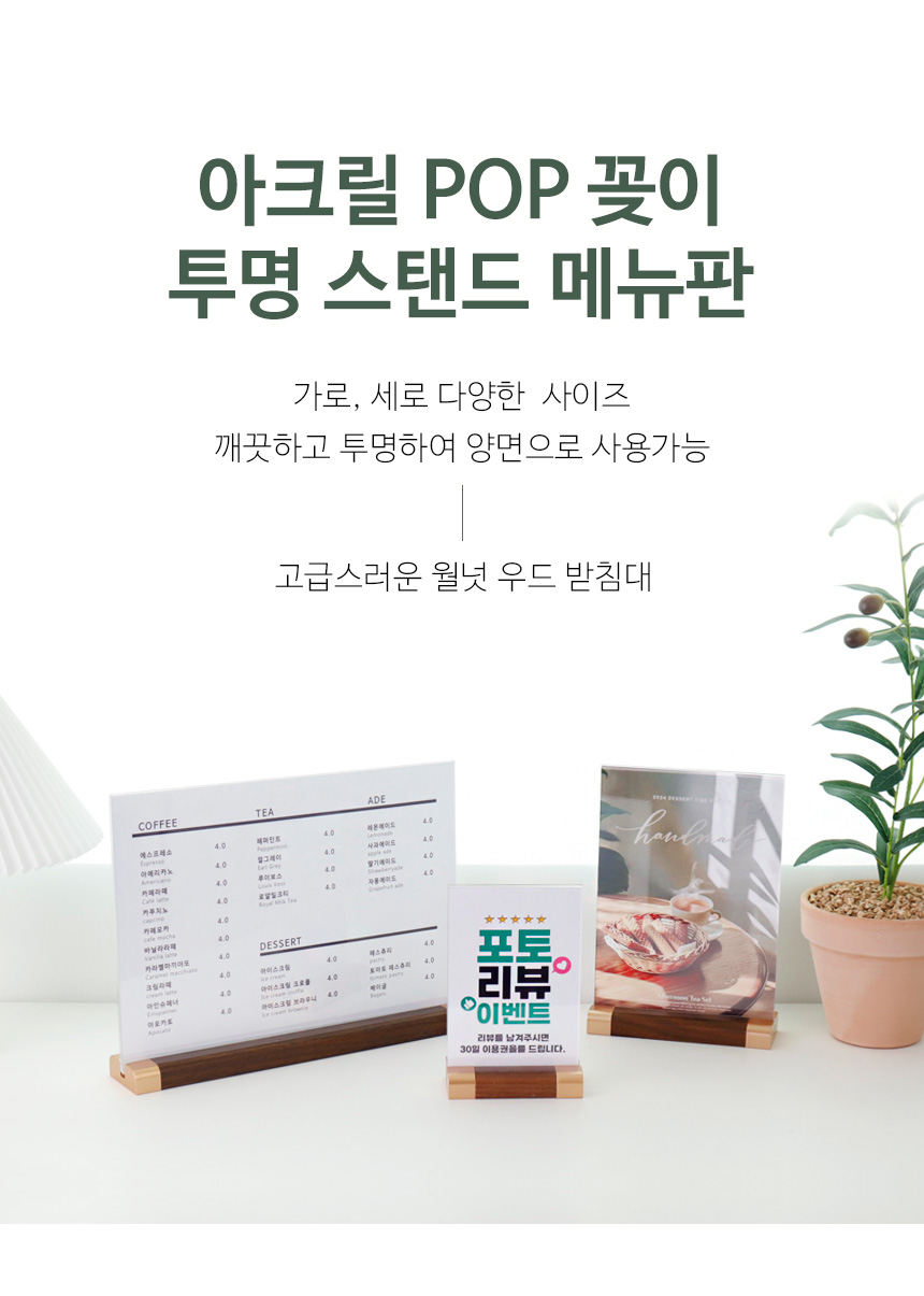 T자형 POP꽂이 안내판 월넛 테이블텐트 투명 스탠드메뉴판 상품가격표 A6 A5 A4