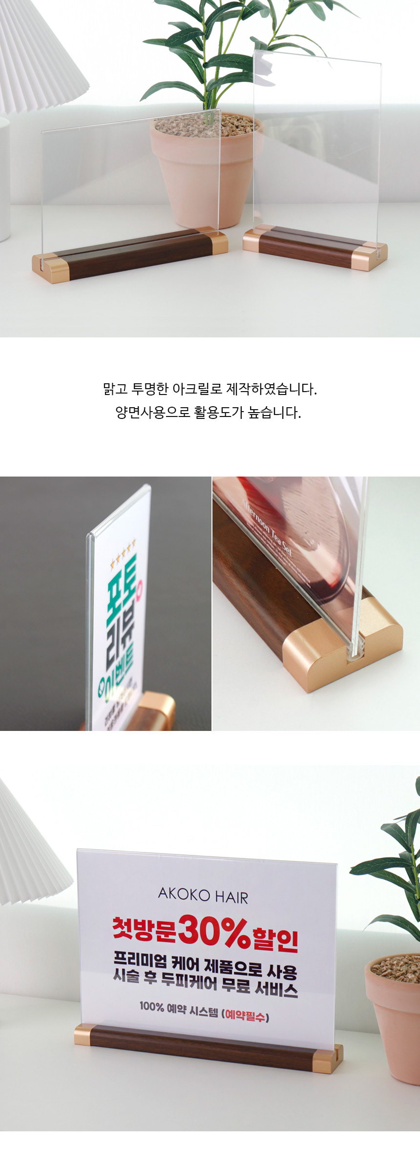 • T자형 POP꽂이 안내판 월넛 테이블텐트 투명 스탠드메뉴판 상품가격표 A6 A5 A4