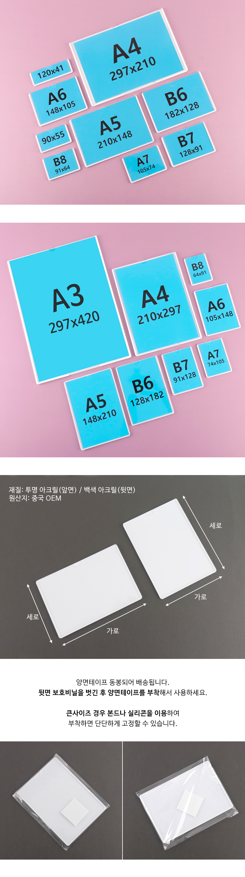 아크릴포켓 부착형 종이사이즈 POP 꽂이 프레임 게시판 메뉴판