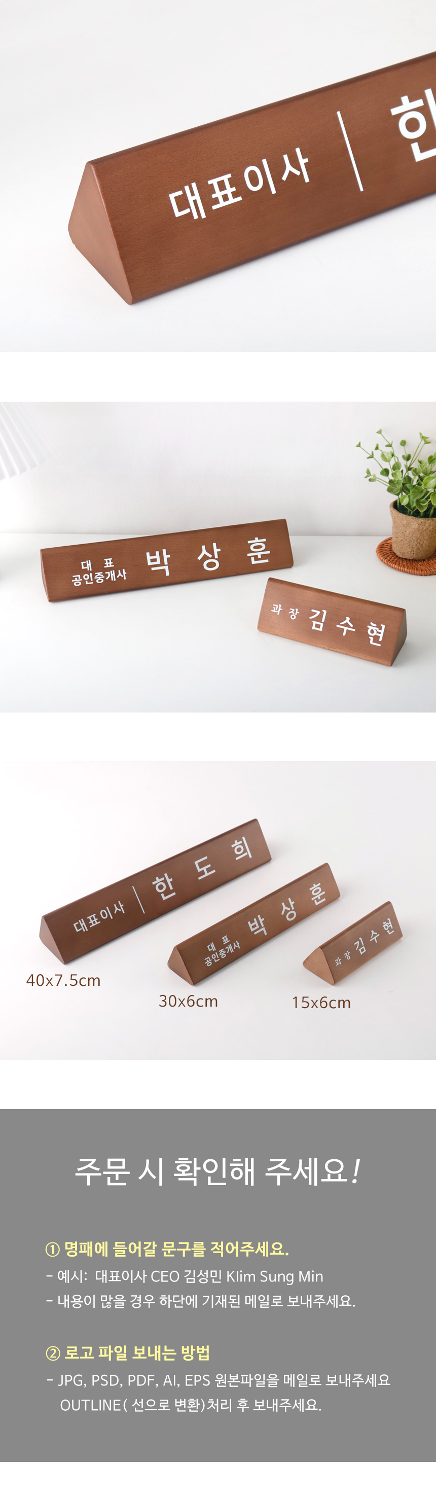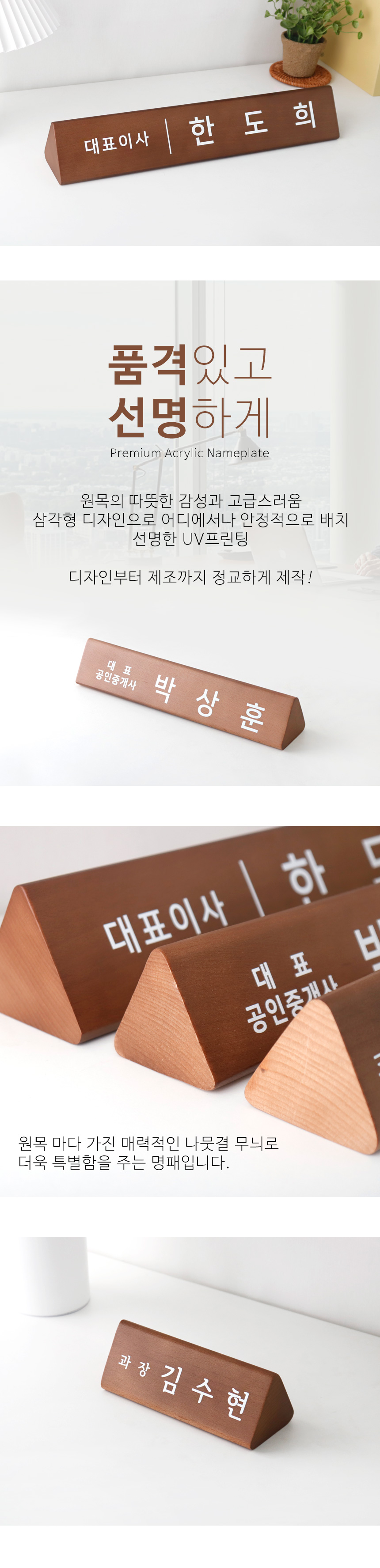 • 원목 우드 삼각 명패 고급 대표 이사 사장 회장 승진 개업 선물